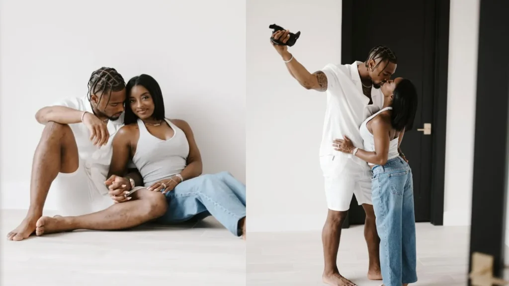 Simone Biles movimentou as redes sociais nesta sexta-feira (19) ao divulgar uma sequência de fotos românticas com o marido, Jonathan