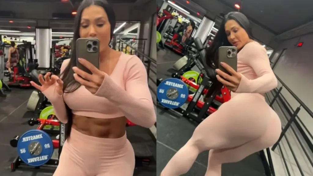 Gracyanne Barbosa treina com shorts furado e diverte fãs ao compartilhar um vídeo do seu treino em casa nesta sexta-feira