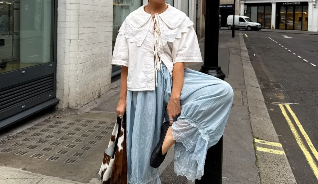 Calça bloomer com renda retorna às passarelas internacionais e desponta como peça-chave dos looks de primavera-verão 2025, unindo romantismo e