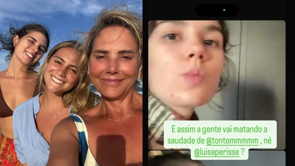 Heloisa Périssé faz videochamada com filhas Luísa, de 26 anos, e Antônia, de 19 anos, para driblar a distância imposta