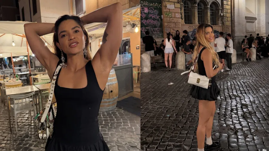 Lucy Alves aposta em saia balonê em passeio por Roma. A cantora de 39 anos chamou atenção neste sábado (6)