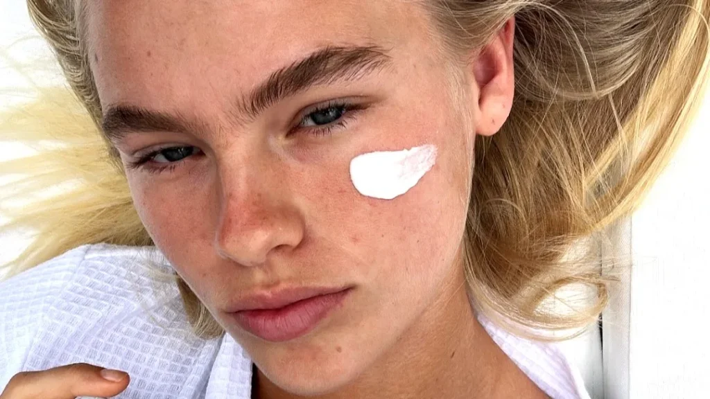 Dua Lipa revelou nas redes sociais que The Sunscreen SPF 50, da marca alemã Augustinus Bader, é seu aliado diário