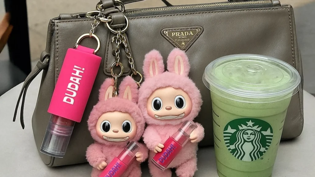 Produtos de beleza em tamanho reduzido, equipados com argolas ou ganchos, estão conquistando espaço ao lado de chaveiros tradicionais e
