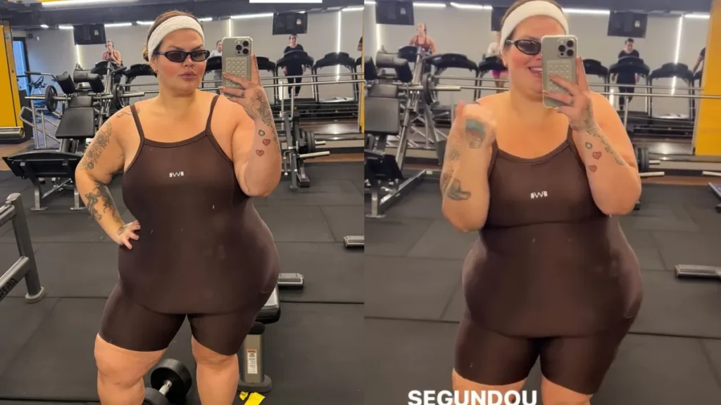 Thais Carla mostrou que a disciplina segue firme ao chegar à academia às 6h53 desta segunda-feira, 1º de setembro. A