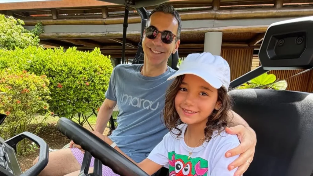 Cesar Tralli e filha Manuella, de seis anos, roubaram a cena durante a folga do jornalista nesta segunda-feira (16) de