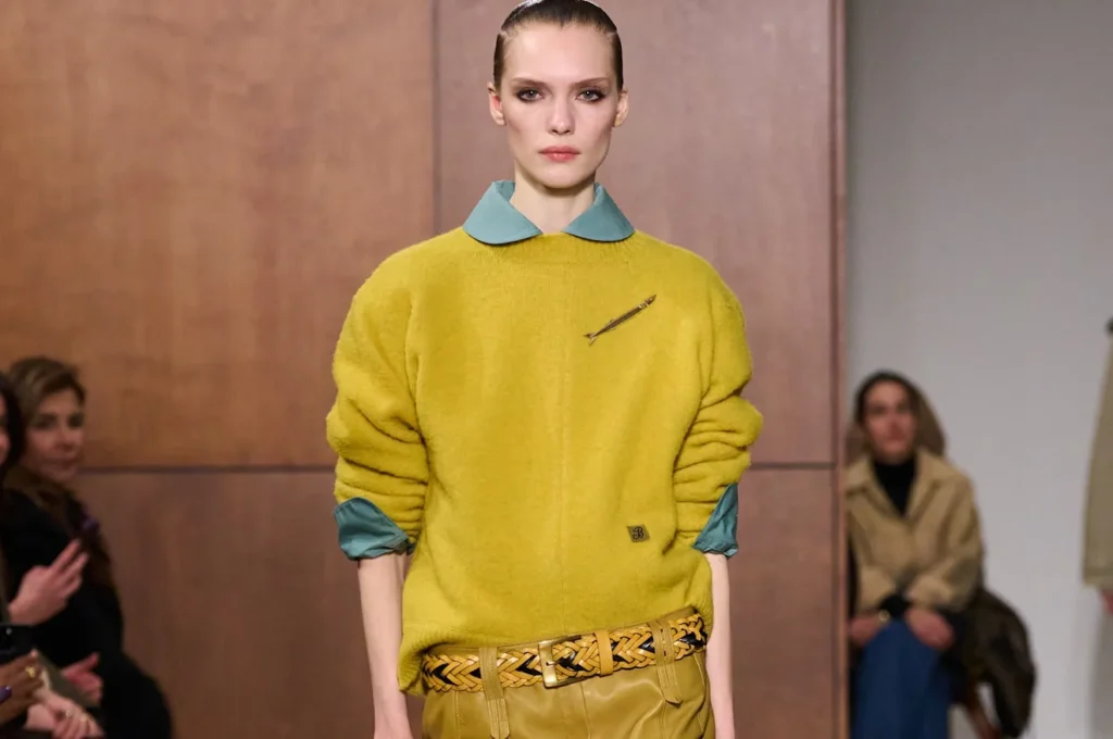 Truques de styling Tory Burch pautaram a apresentação de inverno 2026 na New York Fashion Week, realizada no prédio brutalista
